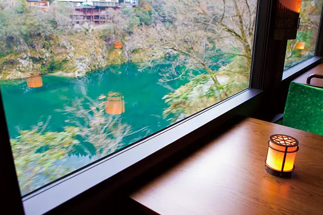 ▲車內的搖曳燈火與窗外的峽谷絕景形成獨家景致。