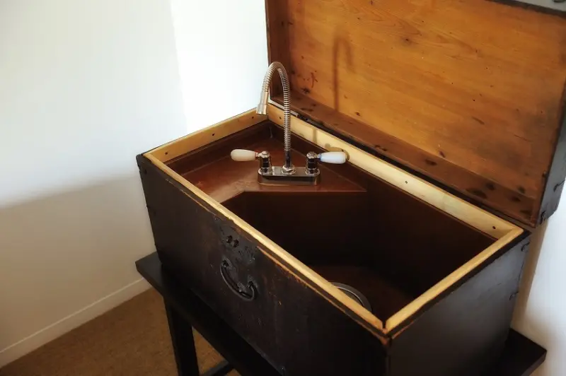 ▲擺放在客廳裡的木箱其實是李朝骨董所改制的銅製水槽。