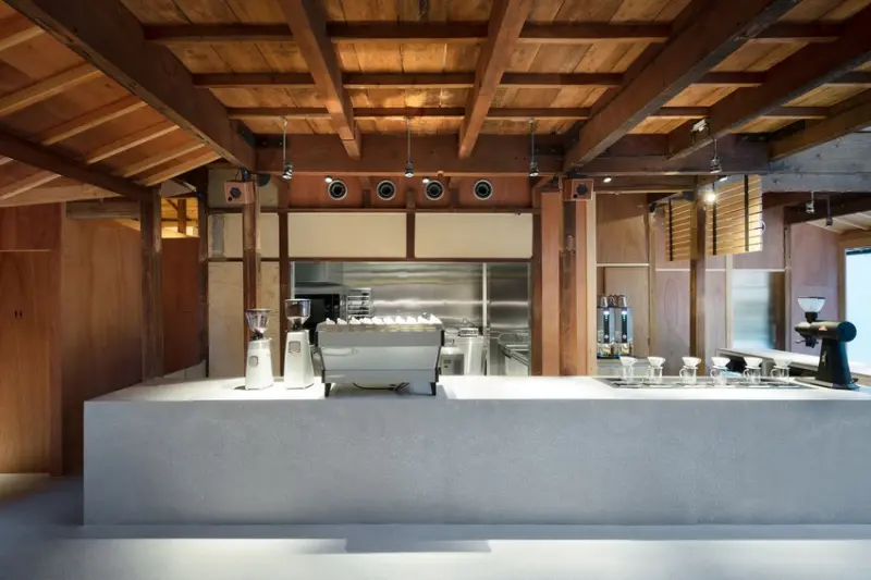 ▲藍瓶咖啡招牌的寬敞吧檯與古老的町家建築結構巧妙融合。