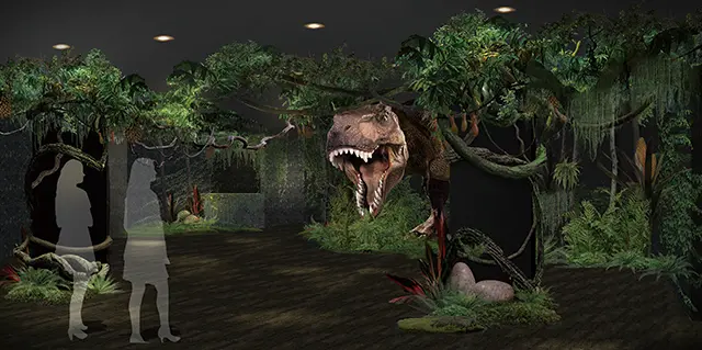 ▲櫃台內協助Check in手續的不是服務人員,而是恐龍造型的人工智慧機器人。