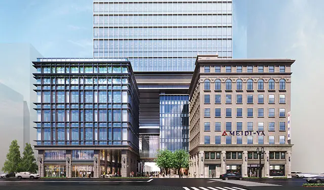 ▲保存了古老的明治屋京橋大樓,再加入新建的全新大廈,融合過去與未來的典雅設計。