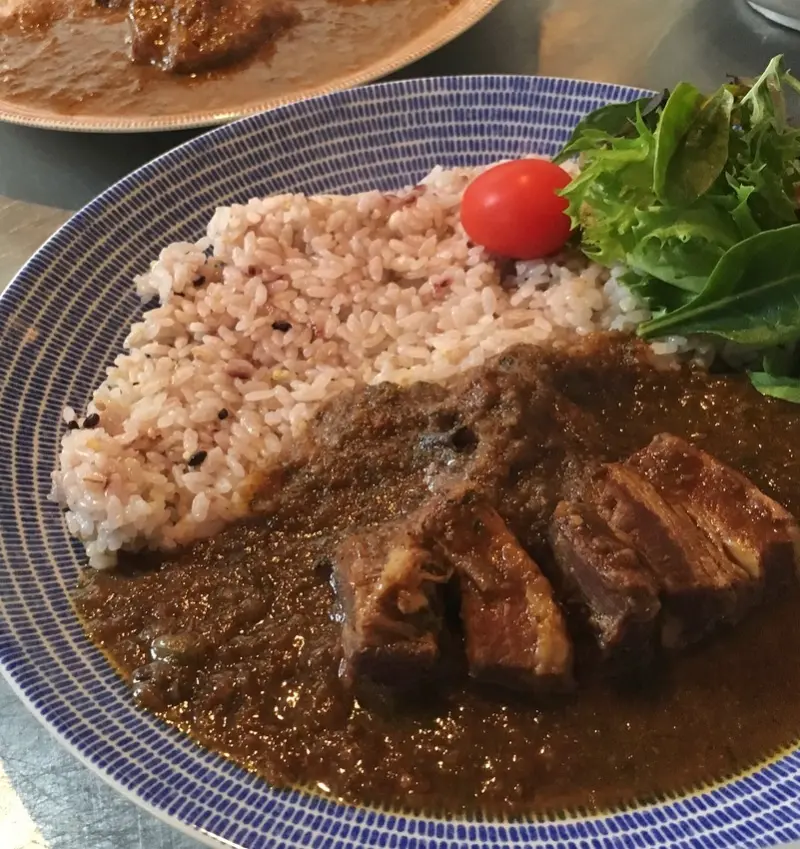 ▲ポークカレー(豬肉咖哩)¥900/選用衛生管理嚴謹、SPF認證的農場豬,將豬肉與蔬菜一起燉煮,且無添加小麥粉,打造無麩質的健康咖哩。