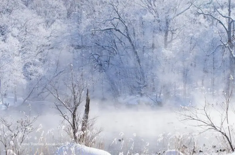 ▲少有觀光客駐足的鳥沼公園 , 園內鳥沼冬季被大片樹冰包圍,交織出靜謐而夢幻的景象 。