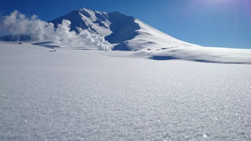 北海道第1高峰旭岳,標高2291公尺,是大雪山山脈的主峰,也是日本最早下初雪的地方。從東川町的旭岳溫泉可搭乘大雪山旭岳纜車到標高1600公尺處的姿見池,纜車上的絕佳視野及山上的壯麗凍原雪景是平地所見不到的景色,除了能欣賞雲海、樹冰及冰塵等珍稀景象之外,還有因強風而形成宛如海浪狀的風紋。