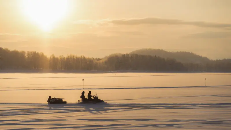 ▲每到冬天就化身為銀白世界的湖面,除了能賞雪之外還能體驗雪上露營、摩托車等活動 。