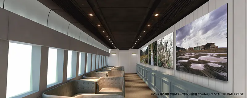 ▲舒適的沙發座椅及藝術作品,忘記自己身在時速200公里的新幹線內(圖片僅供參考)。