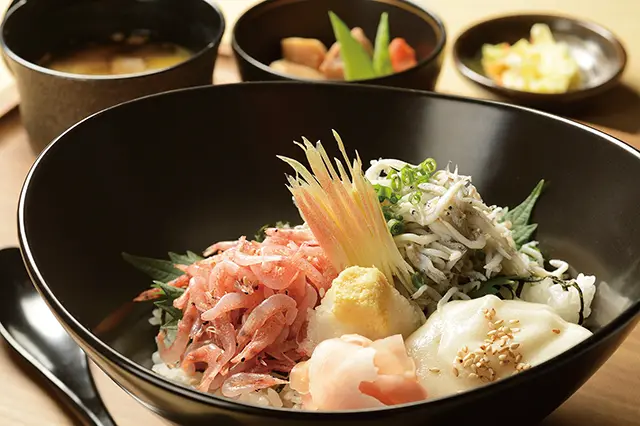 ▲以櫻海老及仔魚打造的「箱根八里丼」是畔屋特製的箱根風味餐。