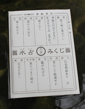 神社境內有湧泉,在此試試水占卜,把籤放入神水中,文字就會出現。