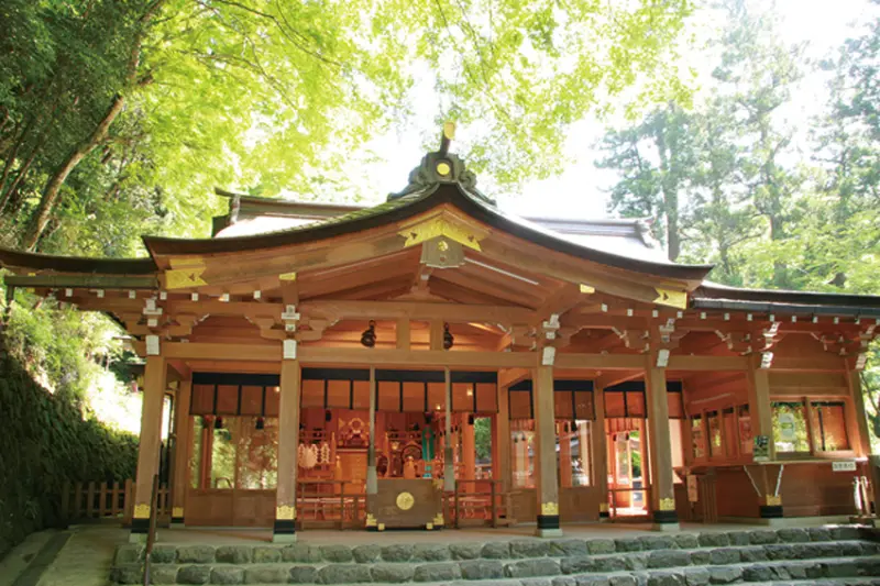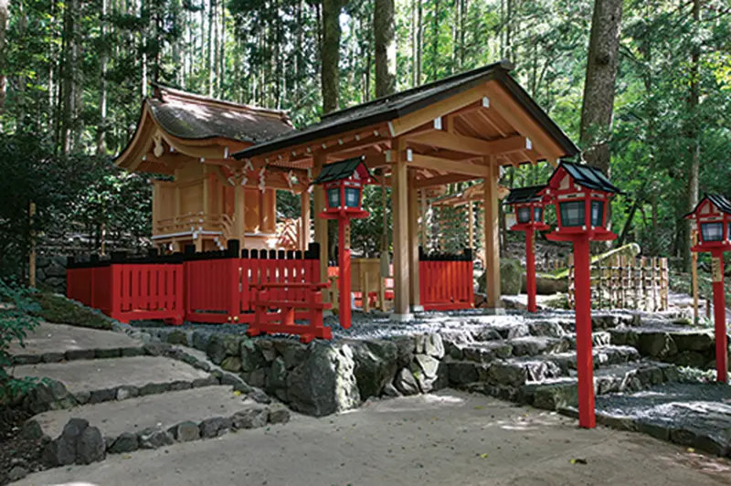 奧宮本殿西側有巨大的石頭群坐鎮,傳說是神武天皇的皇母,也就是玉依姬命來到奧宮,祭祀水神,稱此處為黃船宮。