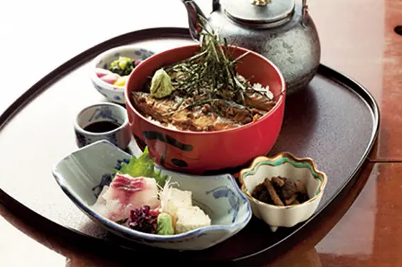 提供蕎麥麵、懷石料理等豐富的日本料理,招牌則是放上整塊實山椒和香魚的香魚茶泡飯(¥1,550~),可品嚐到整隻香魚,經過1天燉煮,連骨頭都變得柔軟。
