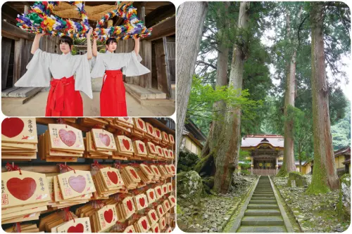 ▲結社(中宮)/供奉結緣之神──磐長姬命,把結文紙張綁在本殿旁的納所,可以祈求實現戀情。