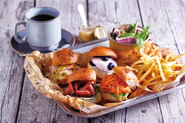 ▲以漫畫中登場的棒球隊The Goose Eggs為主題的迷你漢堡套餐,能一次品嚐到4種不同的美味漢堡。