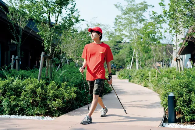 ▲目前備受矚目的北歐步行活動是由caravan登山用品店舉辦。以滑雪桿輔助步行,與一般步行運動比起來,平均消耗量提高20%,更能增強運動效果的健身方式。