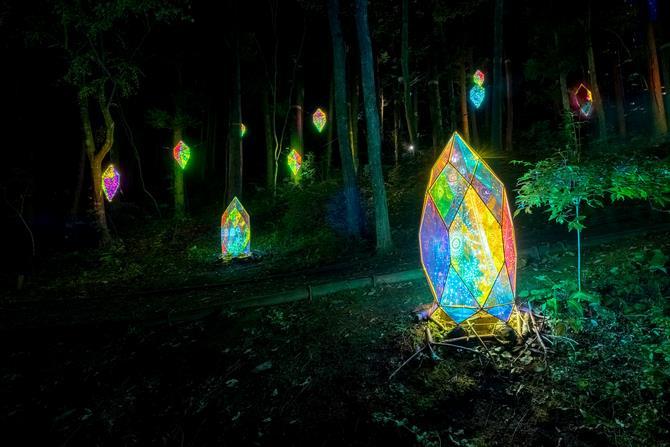 ▲每年夏秋交替之際的點燈活動,七彩的玻璃燈飾與自然交融的景致,彷彿將人帶入宮澤賢治的世界。