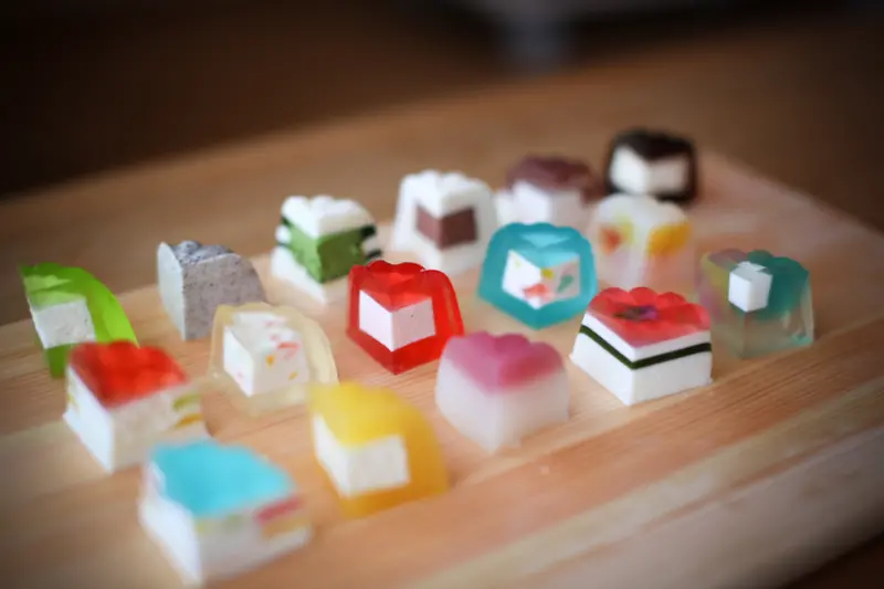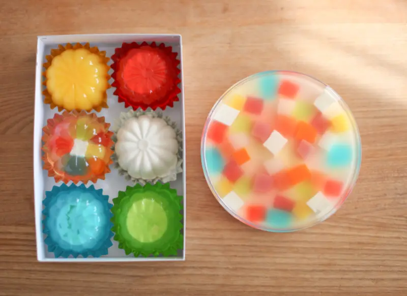 ▲組合多種素材所做的果凍各個色彩繽紛 。