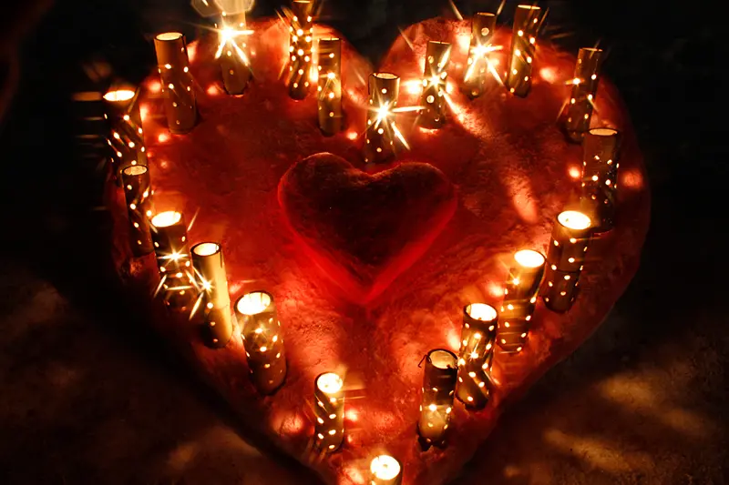 ▲以蠟燭排列成愛心形狀,在情人節的2月份裡也相當應景。