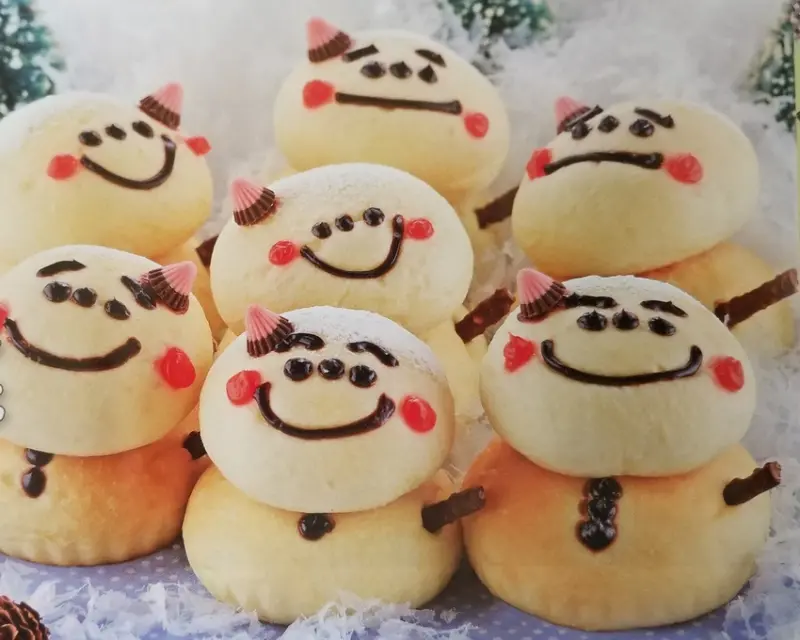 ▲雪人造型的「 ゆきんこ (雪子)」 內餡包有奶油,是冬季限定的麵包 ,¥260/個 。