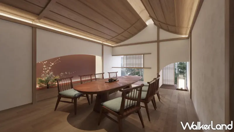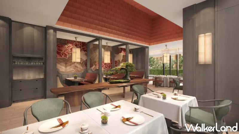 此外,中餐廳與日式餐廳分別以東西方文化為核心,展現截然不同的設計美學。中餐廳透過8米寬的牡丹手工鑲嵌圖案以及取材自紅瓦屋頂的天花板設計,重新詮釋了台灣傳統建築的優雅與溫馨;而日式餐廳則以「留白之美」為核心理念,透過障子窗框與光影變化營造出如詩般的沉靜氛圍,邀請賓客在這片空間中探索自我,感受侘寂美學的不完美之美。這五間餐飲空間不僅在味覺上滿足老饕,更在視覺與感官層面帶來深刻的文化體驗。