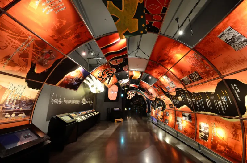 ▲以紅色為基調的長廊,展示了睡魔祭的豐富歷史資料。