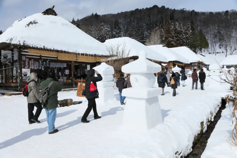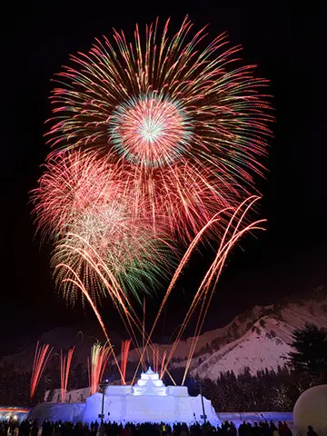 福島的知名觀光景點「大內宿」,多間茅草屋林立街道,充滿歷史風情,引人入勝。每年2月盛大登場的雪祭,活動期間道路兩旁設置了雪燈籠,宛如童話故事裡的村落。白天有精彩夜來祭、蕎麥麵大胃王競賽等活動,為營造出熱鬧非凡的氣氛;入夜則有雪祭的重頭戲「煙火大會」,景色絢爛奪目。