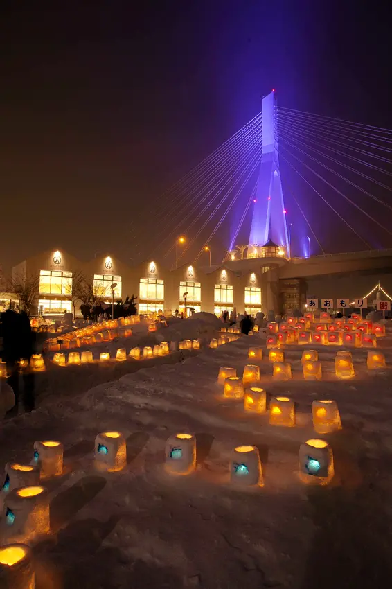 以雪打造成的燈籠,為嚴冬增添溫暖的光芒。每年一月為期3天的青森雪燈祭,由市民花費一周時間手工製作上千個雪燈籠,排列成不同圖案,擺放在鄰近青森車站的廣場,規模之大相當吸睛,讓過路客紛紛前來與雪燈籠合影。活動期間,還可體驗製作個人的願望蠟燭掛飾「WISH Candle」,寫下希望與祝福。
