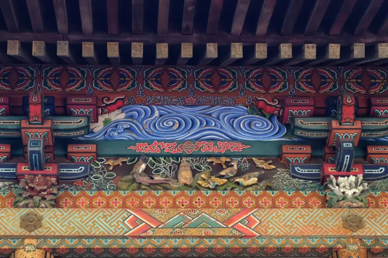 來秩父神社時剛好是日本過年期間,參拜的人潮不斷。寺廟外圍的雕刻是著名雕刻家左甚五郎的作品,來到這記得抬起頭找找看,就能發現這些特色雕刻喔!