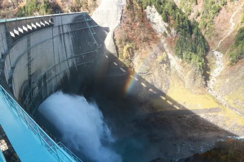 利用黑部川水源建造的大型水壩,位於海拔1470公尺處,高度日本第一,因地形險峻,1950年代建設當時,曾犧牲了多名建築工人,之後更拍成電影《黑部的太陽》。一望無際的湖面、高低落差極大的水壩建築,各處都設有展望台,能從不同角度欣賞人類與大自然共存的結晶。配合開山期間每日會進行觀光型放水秀,更顯壯觀。