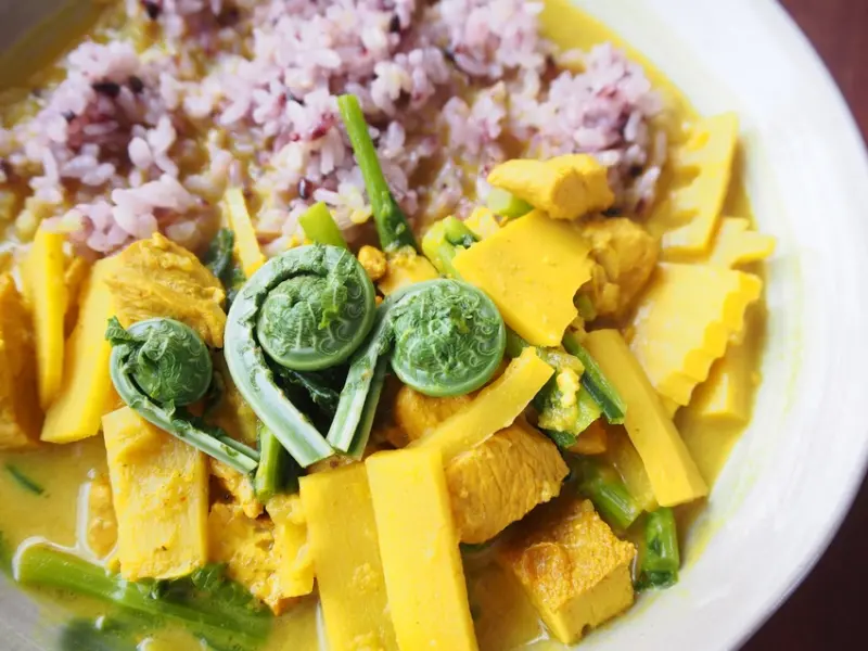 ▲月替わりカレー(本月咖哩)¥870/以當季食材與特製香料打造的道地印度咖哩。