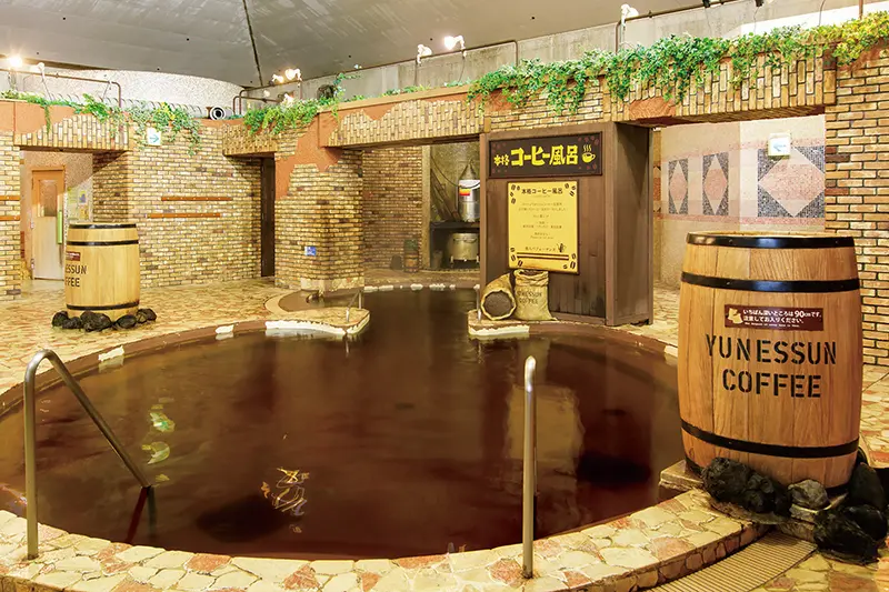 ▲與三本咖啡合作開發、日本第1個以溫泉低溫提煉咖啡的湯泉,每天還有3次現場倒入咖啡的娛樂活動。