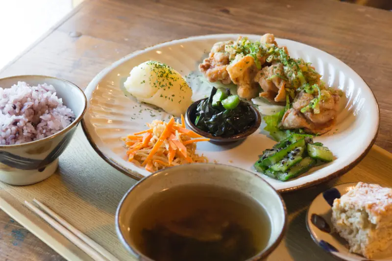 沖繩除了著名的海之咖啡館之外,其實北部還有許多森之咖啡館,位於山坡上的「ハコニワ」是由屋齡50多年的老民宅改建的山間小屋,每一磚一瓦都蘊含著老闆娘的心意。細膩典雅的佈置,有如回到了老家一般舒適。店內餐點都是老闆娘親自設計,以沖繩野菜為中心,提供各種溫潤天然的手工家常菜。