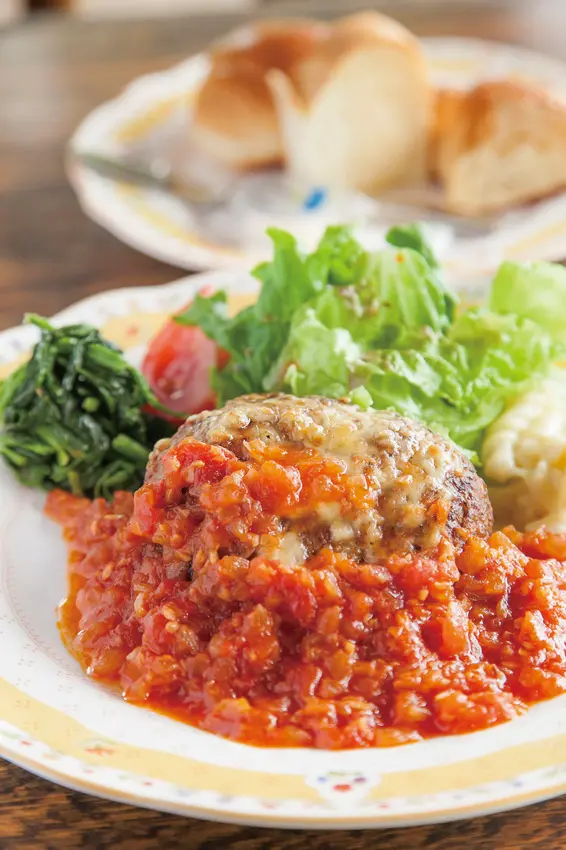 ▲イタリアンハンバーグ(義大利漢堡排)¥1200/常客讚不絕口的多汁漢堡排,有白飯和麵包2種附餐可選。