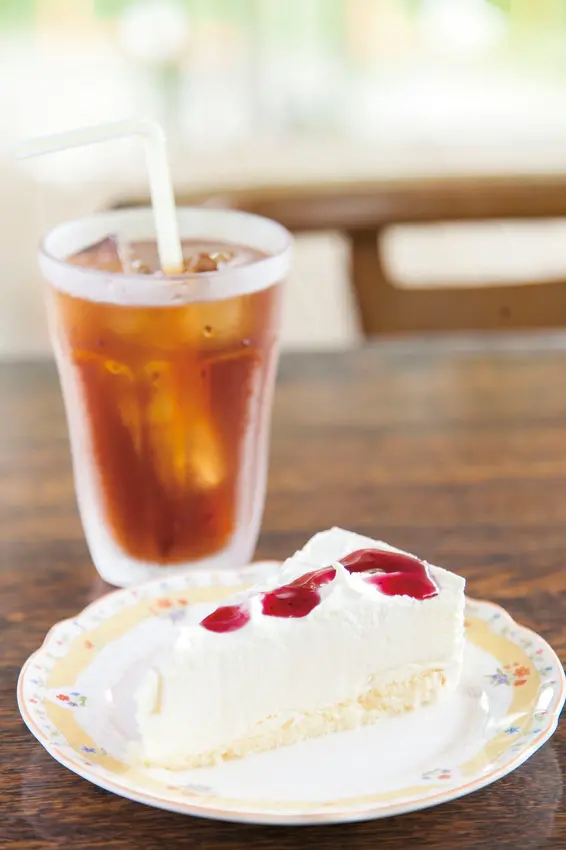 ▲レアチーズケーキとドリンクのセット(生乳酪蛋糕套餐)¥800/口感綿密的乳酪蛋糕是店內人氣餐點之一。