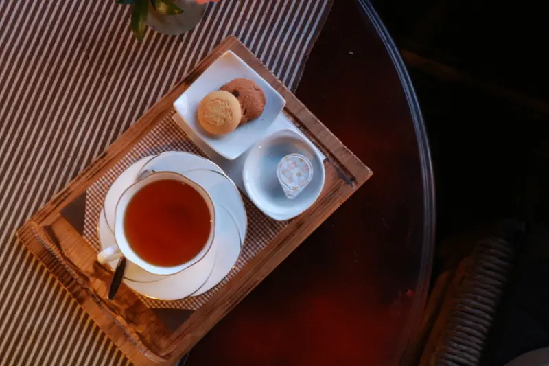 ▲點一杯當地生產的著名高梁紅茶(¥500),附有手工餅乾一同品嚐,休息片刻。