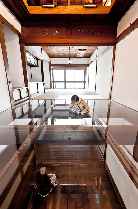 1911年落成的「木屋旅館」位於愛媛縣的宇和島市中心,擁有超過百年歷史的古老木造建築,如今被登錄為有形文化財,許多著名政治家、作家等都曾入住。2012年經建築師永山祐子之手重獲新生,轉變為整棟租借形式成為老屋民宿,設計上保留舊有的木頭結構,加入透明地板、螢光燈飾等令人驚豔的現代設計元素,結合懷舊的歷史氛圍,碰撞出獨特奇幻的空間。2樓有4間榻榻米房間,可容納2至10人入住。