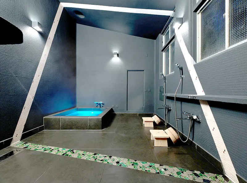 ▲最初為日本衛浴品牌「TOTO」員工使用的進修館,後來開放民眾入住。大浴池擁有大片玻璃,相當舒適。