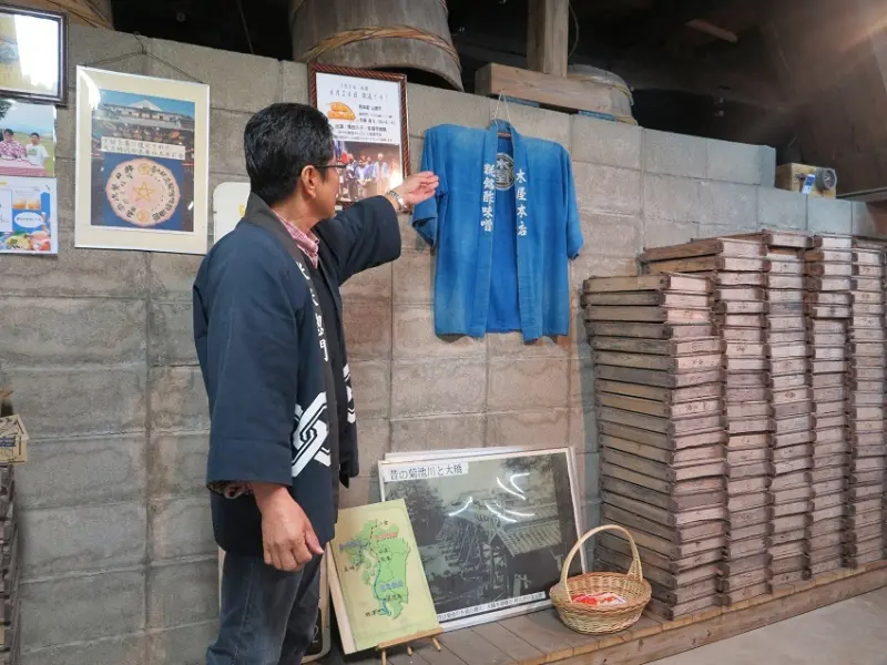 ▲由專人說明代代流傳的米麴製法與設備 。