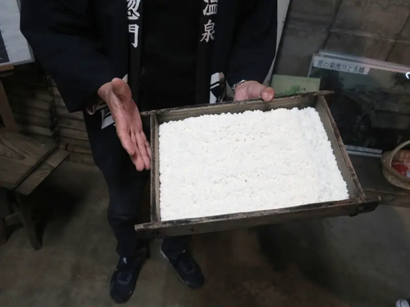 ▲專人會拿出米麴講解,可以拿起來摸摸觸感。