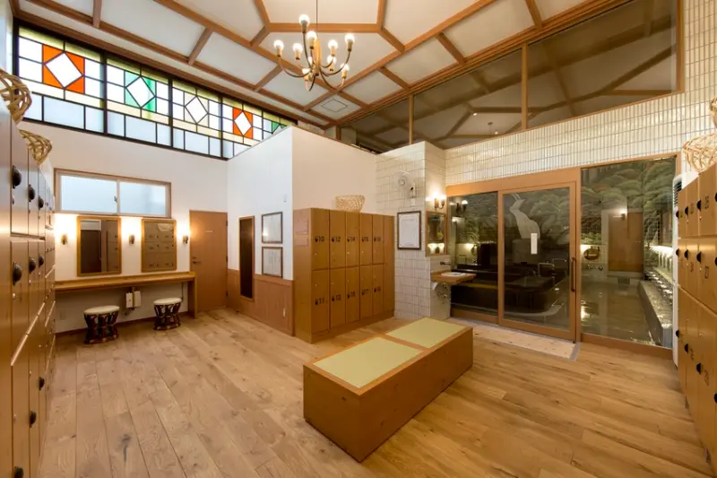 只要¥460就能體驗的日本在地文化,潛入古老的大眾澡堂,是許多旅客都想挑戰的行程。坐擁80年歷史的老舖錢湯,2017年以愛媛道後溫泉為藍圖全面翻新,卻細細保留了澡堂原始的面貌,以大正浪漫風為主軸,澡堂壁畫、彩繪玻璃、木造置物櫃一樣不少,3個大浴池全是溫泉,一次滿足多樣體驗。