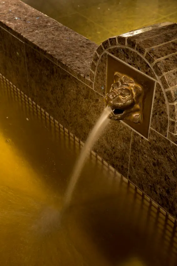 ▲日本錢湯必備的浴池壁畫加上雕刻等,宛如藝術空間一般。溫泉為鹼性鹽化物炭酸冷礦泉,具有多項療效。