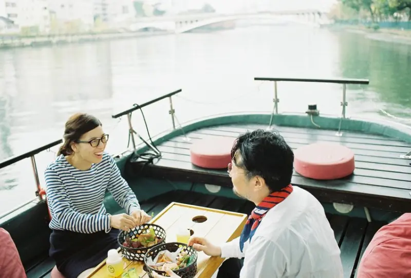 由一對夫妻巧手改建養殖珍珠用的小船,成為「水上漂浮的小屋」般的遊覽船,可坐在船頭,欣賞沿途河景,感受微風徐徐吹來的舒暢。提供春天的賞櫻遊船、港灣遊船等多元的遊船方案,其中早餐遊船方案,可邊乘船邊品嚐枚方農園直送的蔬食早餐,每一口都能嚐到農家的用心與食材的鮮甜。