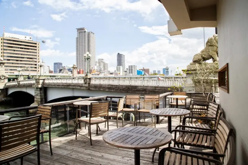 鄰近中之島中央的北濱車站,一棟醒目的純白大樓正是販售器皿藝術者作品的雜貨店SHELF及附設的咖啡廳MOTO COFFEE。咖啡廳1樓設有水上的露天座,宛若日本傳統的川床一般,能在微風中享受典雅的水岸景致、遠眺對面歷史悠久的大阪證券交易所大樓,一個人也能靜靜享受片刻的愜意。