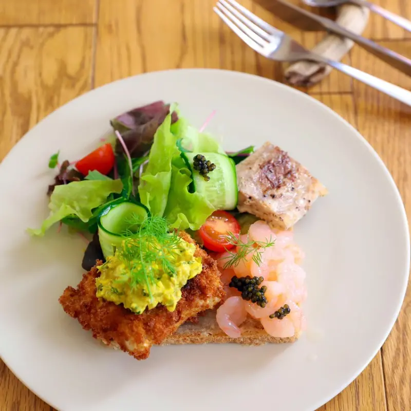 ▲重現丹麥經典風味的開放式三明治「流星(¥1620)」。