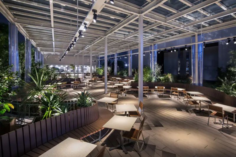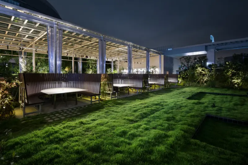 ▲附設的餐飲空間進駐了2家特色餐廳,用餐區空間開闊,還有面對大片綠地的露天座。