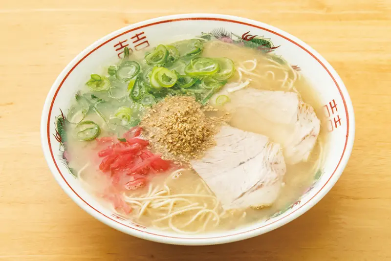 創業於1974年的福岡代表性拉麵老舖,沒有多餘裝飾的店舖散發著濃濃老店風情。40年來不變的滋味始終獲得饕客們的青睞,人氣居高不下。為減少豚骨的腥臭味,不使用豬頭骨,僅以背骨、拳骨熬湯,看似清爽卻是越吃越香醇紮實,令人上癮。除了拉麵,為搭配拉麵特製的清爽炒飯也以美味著稱,值得一嚐。