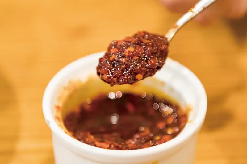 ▲桌上除了一般拉麵店常見的醬汁、紅姜外,還有自家製的辣油,不論是拉麵、鍋貼都能搭配品嚐。