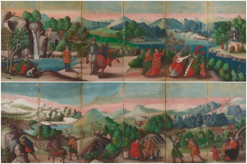 ▲被列為重要文化財、桃山~江戸時期的畫作《泰西風俗図屏風》,是日本南蠻美術的大作。