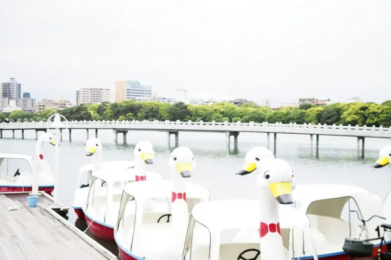 為整備博多灣而開發建造的大濠公園就位在福岡市中心,公園中央的湖水擁有22公頃的廣闊面積,是日本相當少見的水景公園。腹地遼闊、備有多元設施與店舖,除了有划船設施、池中島、傳統戲劇舞台能樂堂、湖邊咖啡廳與餐廳等,境內還有日式庭園,除了可欣賞枯山水庭園與瀑布之外,還有茶室可賞景、品茶。