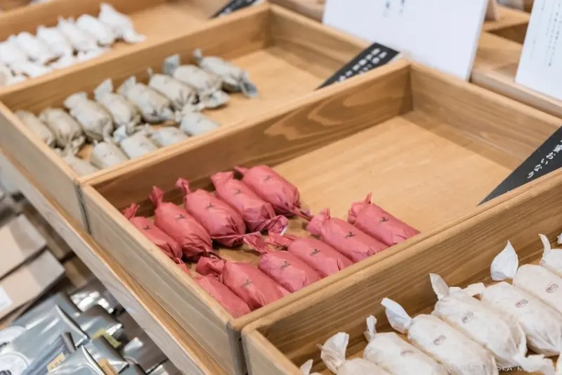 鄰近舞鶴公園、大濠公園的「&LOCALS」是2017年11月開幕的人氣店,宛如糖果包裝的稻荷豆皮壽司除了外型吸睛,便於攜帶的設計也成為野餐的絕佳選項。隨季節會推出不同口味的稻荷壽司,4月底預計推出柑橘口味。品牌以發揚地方產品為宗旨,因此除了稻荷壽司之外還有販售當地農產品與調味產品。