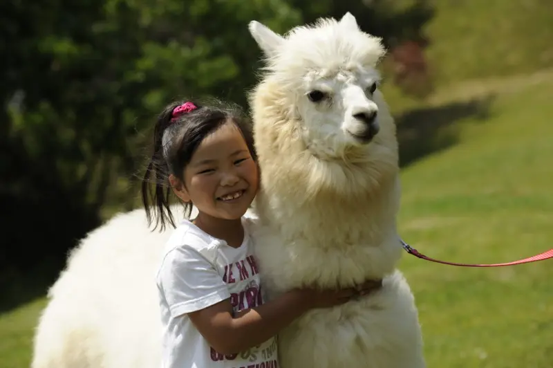 ▲備受歡迎的羊駝散步時,可輕輕觸摸牠、與牠合影。