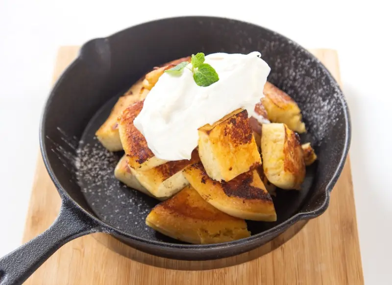▲元町オリジナルソースパンケーキ(元町自家製招牌鬆餅)¥1404/自家製的獨特醬汁是別處吃不到的招牌口味。鐵盤法式鬆餅也是人氣品項。